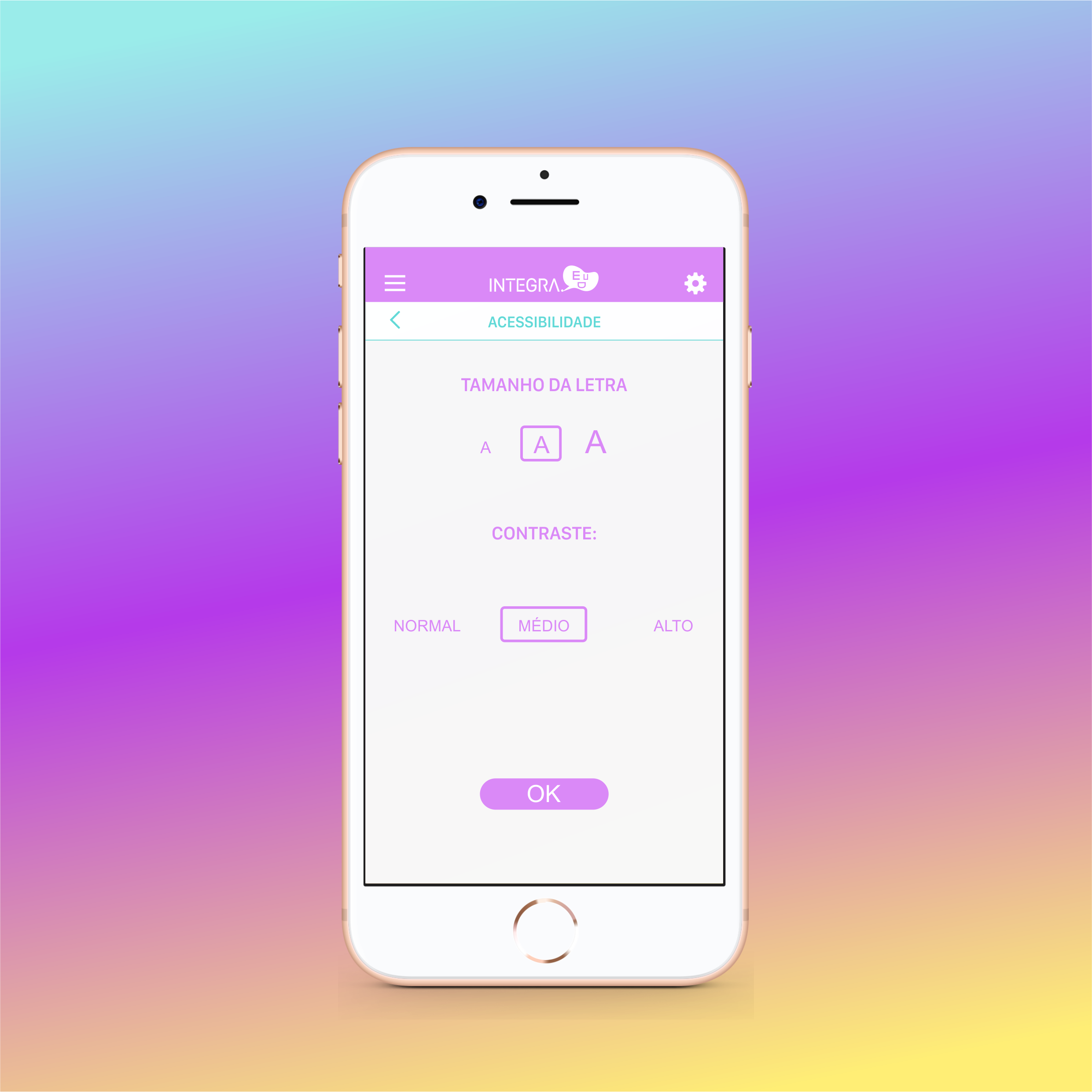 onde o usuário vai selecionar opções de acessibilidade, como aumentar ou diminuir a fonte dos textos e normalizar, mudar as cores, oferecendo o contraste.